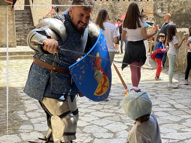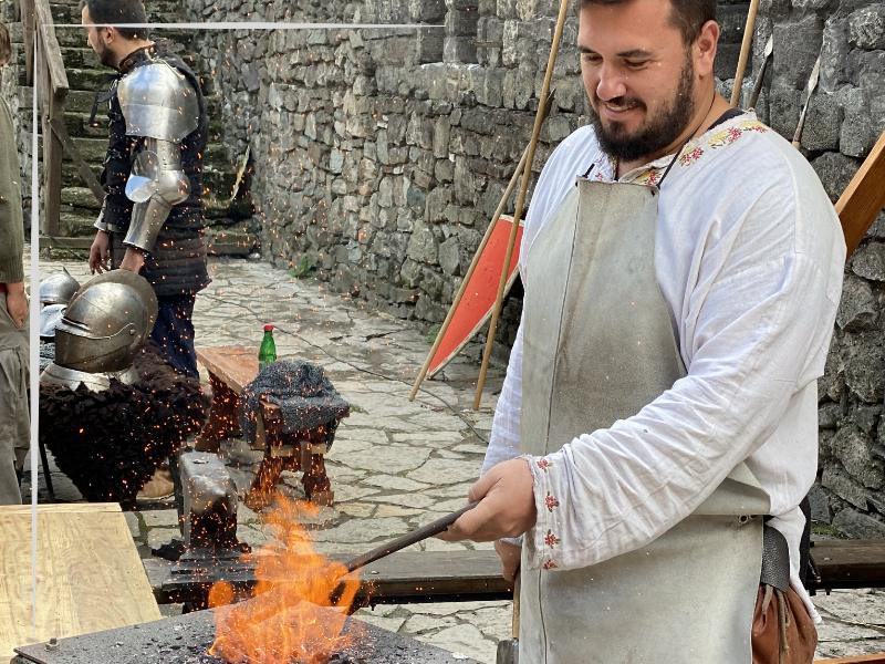 Mediaeval music, sounds of a hammer striking the anvil, the sound of a horn announcing the battle in the ring placed in the centre of the Small town just add to this experience.